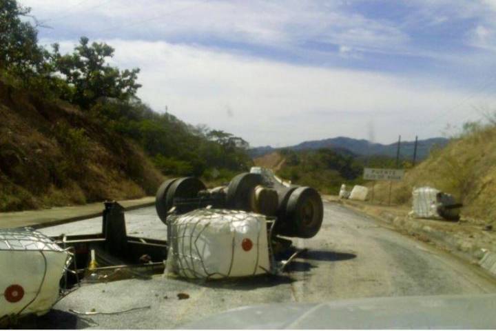 El accidente, registrado alrededor de las 12:00 del mediodía en el túnel de Copala, lo protagonizó un trailer doble remolque cargado con miles de litros de nitrato de calcio, usado como fertilizante.