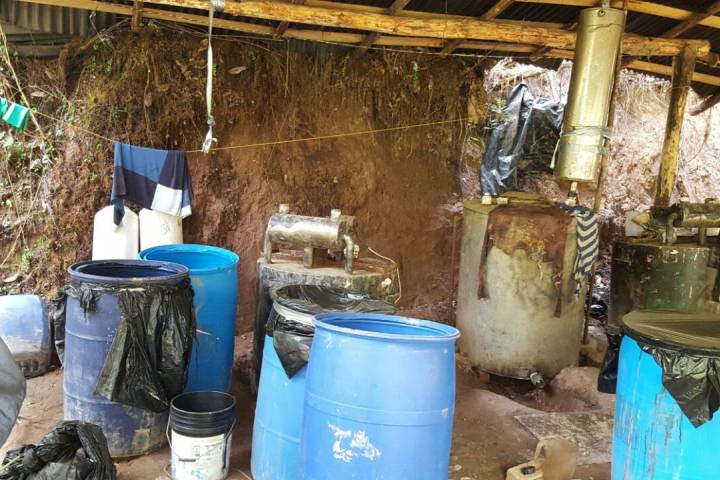 Durante recorrido del personal policial y castrense para la prevención del delito, por el poblado de San Antonio Villalongín localizaron el laboratorio rústico utilizado para la elaboración de droga sintética.
