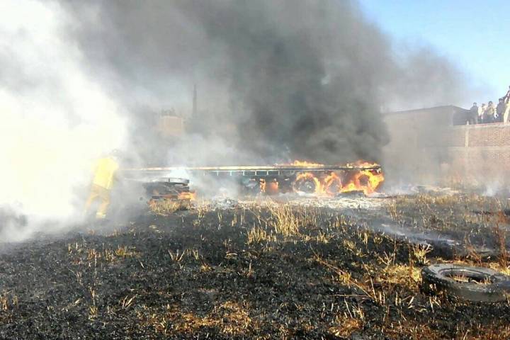 NOTICIAS 29/01/2017Arde pastizal y el fuego afecta tres plataformas para tráileresTres plataformas para tráileres y varias llantas acabaron en pérdida total en medio de un incendio de pastizal, registrado en la colonia Tierras Coloradas en esta ciudad, así lo refirieron contactos policiales.