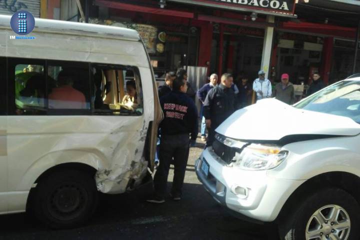 NOTICIAS 15/01/2017Cinco pasajeros heridos en choque de camioneta contra combi de la Ruta GrisCinco pasajeros resultaron lesionados después de que una camioneta impactó la combi del transporte público en la que se trasladaban, accidente que sucedió en el Periférico Republica en esta ciudad, trascendió en la labor noticiosa.