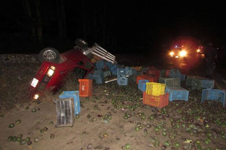 Durante la madrugada de este domingo una camioneta cargada con varias toneladas de aguacate volcó, tras el percance el conductor de la unidad se dio a la fuga dejando la abandonada.