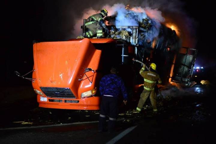 Durante las primeras horas de este viernes, un camión de carga ardió en llamas cuando circulaba sobre la carretera Morelia ? Pátzcuaro. La emergencia fue atendida por personal de Bomberos Morelia y Protección Civil Estatal, por fortuna no se reportaron personas lesionadas.