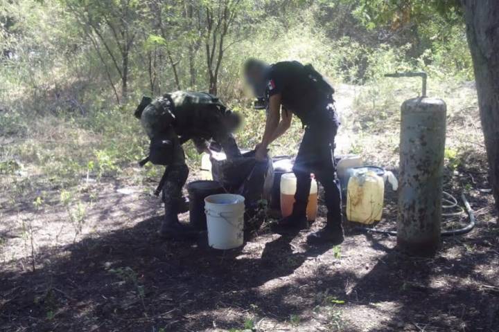 En recorrido de prevención por el camino de terracería Antúnez - Las Yeguas, los efectivos visualizaron cubetas abandonadas por lo que procedieron a realizar una inspección al lugar.