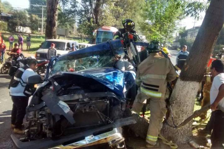 El chofer de una camioneta quedó malherido al colisionar su unidad contra un árbol. El hombre estaba prensado entre los hierros retorcidos de su automotor y los rescatistas tuvieron que usar equipo hidráulico para salvarlo y enseguida canalizarlo a un hospital local.