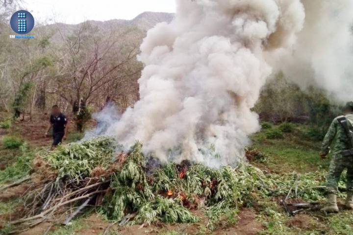 NOTICIAS 02/12/2016Policía Michoacán y Sedena destruyen tres plantíos de marihuana en TumbiscatíoOperativos coordinados con autoridades federales para acabar con los remanentes de la delincuencia organizada, permitieron que elementos de la Policía Michoacán localizaran y destruyeran tres plantíos de marihuana en el municipio de Tumbiscatío.