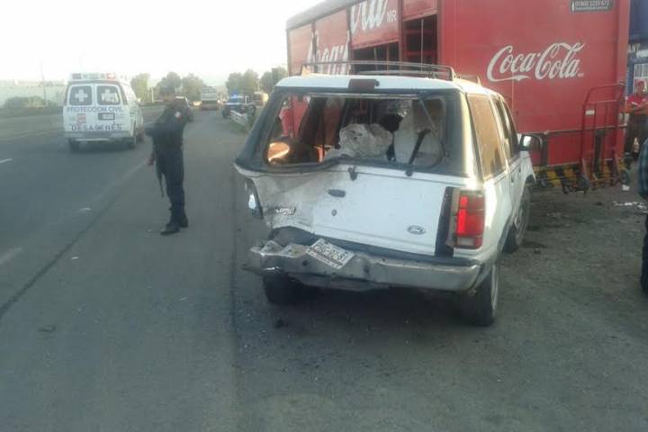 Una carambola entre tres vehículos, uno de ellos un camión de la empresa refresquera Coca Cola, el cual estaba estacionado, dejó como resultado dos lesionados, según el reporte de la Policía y de los cuerpos de auxilio.