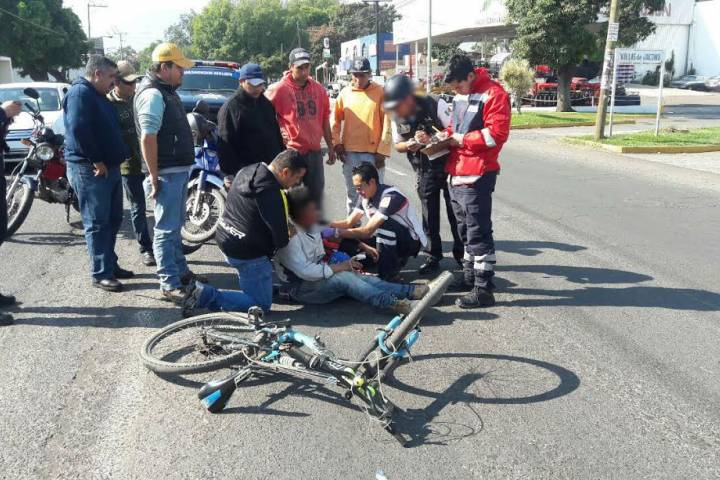 La mañana de este miércoles, un joven ciclista resultó con diversas lesiones al impactar su unidad contra una camioneta particular; luego del choque el muchacho revisado por unos paramédicos y el personal de vialidad elaboró los peritajes respectivos.