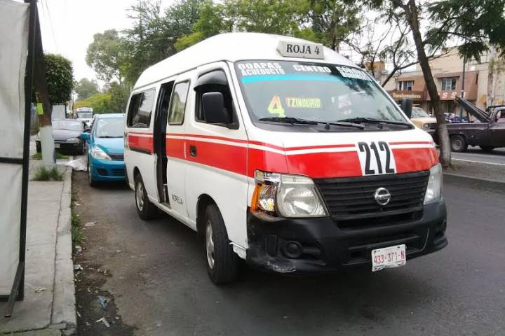 Una combi de la "Ruta Roja 4 Tzindurio" chocó por alcance contra un automóvil y a consecuencia del percance una joven usuaria del vehículo del transporte público quedó levemente herida, dijeron fuentes policiales y de socorro.