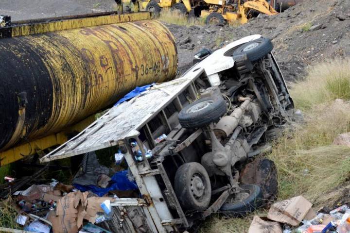 NOTICIAS 16/11/2016Vuelca una camioneta que trasladaba chiles enlatados