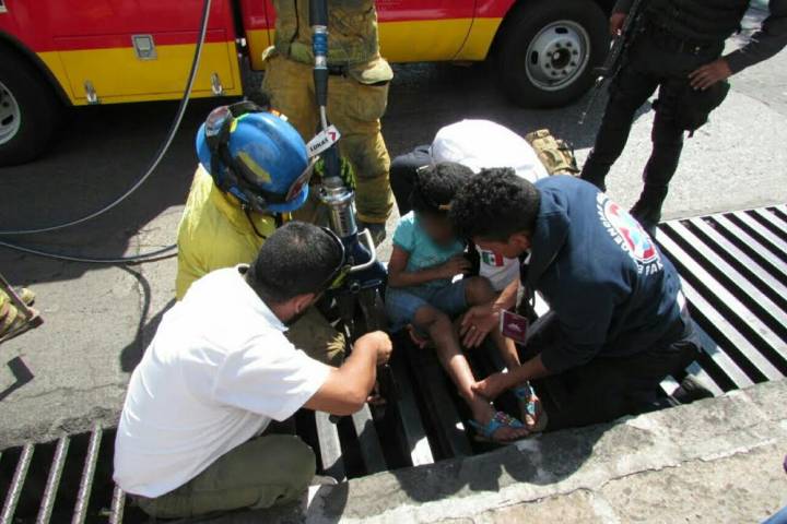 Una niña fue rescatada por los bomberos de Protección Civil Estatal (PCE) después de que cayó a una alcantarilla y se le atoró una de sus piernas, por fortuna sólo quedó en un susto y un golpe que no pasó a mayores, dijeron los mismos socorristas.