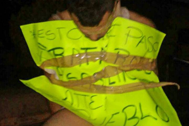NOTICIAS 01/11/2016Encuentran a hombre desnudo, golpeado y amarrado en una sillaUn sujeto desnudo, maniatado y con múltiples golpes, fue localizado sentado en una silla en la tenencia de las Guacamayas, perteneciente a esta ciudad de Lázaro Cárdenas; en el pecho el muchacho tenía una cartulina en la que se le acusaba de ladrón.
