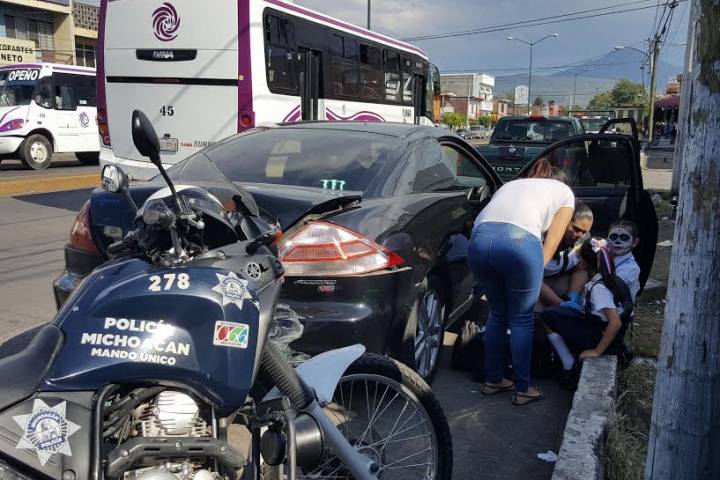 Dos menores de 6 años de edad resultaron con algunos golpes, después de que el auto donde viajaban en compañía de la madre de una de ellas fue impactado por alcance por una camioneta, al lugar se trasladaron los paramédicos de Rescate y Salvamento así como de elementos de Tránsito Municipal.