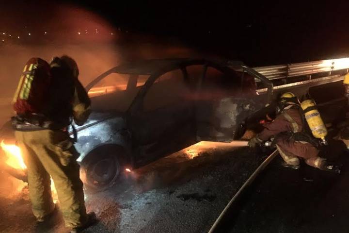 Un automóvil se quemó debido a una aparente falla eléctrica, siendo atendida la emergencia de manera inmediata por los bomberos de Protección Civil Estatal (PCE), gracias a los cuales la situación no pasó a mayores.