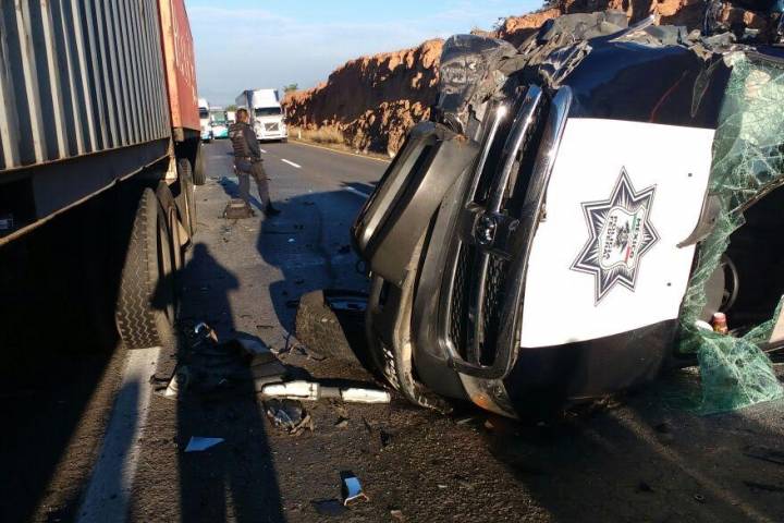 Una patrulla de la Policía Federal (PF) colisionó contra la caja de un tráiler de doble remolque y terminó destrozada, milagrosamente sus ocupantes resultaron ilesos, de acuerdo con los datos obtenidos por este medio de comunicación.