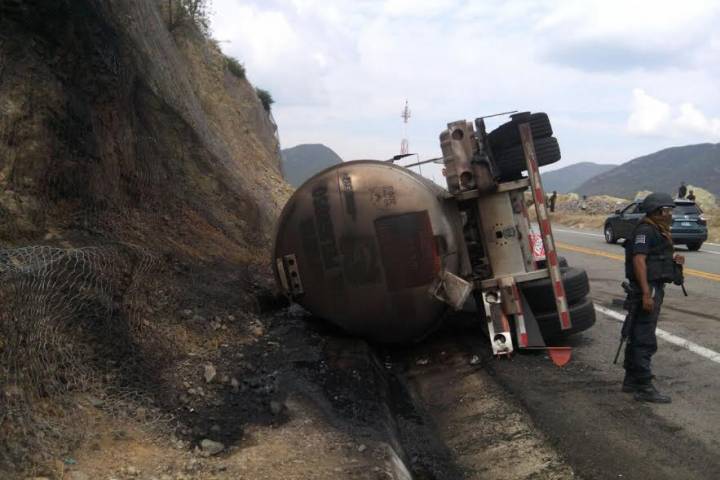 NOTICIAS 20/10/2016Se le desprende un contenedor a una pipa con diésel, vuelca y arde