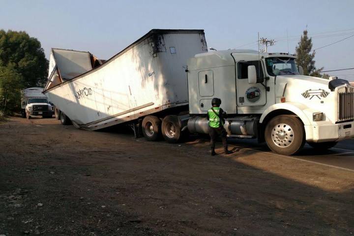 NOTICIAS 18/10/2016Se le dobla por mitad la caja a un tráiler en la Salida a Pátzcuaro