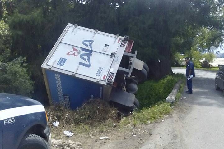 NOTICIAS 27/09/2016Se accidenta camión repartidor de lácteos en TangancícuaroEl conductor de un camión repartidor de productos lácteos, resultó ileso, luego de que perdiera el control de su unidad y se proyectara hacia un canal de riego agrícola, por fortuna el pesado automotor no alcanzó a caer hasta el fondo.