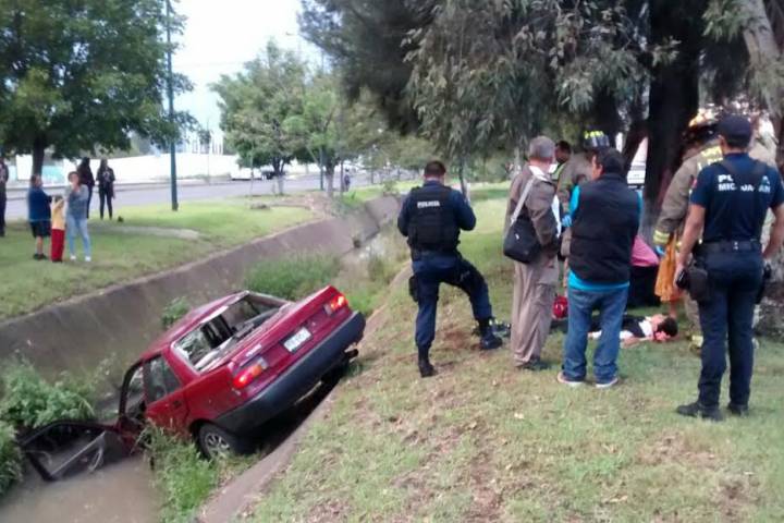 NOTICIAS 03/09/2016Familia sufre accidente termina en un canal de aguas negras en el Periférico de Morelia