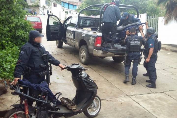 NOTICIAS 05/09/2016Detiene SSP a presuntos implicados en agresión a policÃas en TacámbaroLa SecretarÃa de Seguridad Pública (SSP) informa que derivado del reforzamiento de la seguridad en el municipio de Tacámbaro luego de un enfrentamiento entre elementos de la PolicÃa Michoacán y civiles armados, se logró la detención de cuatro personas y el aseguramiento de armas, droga, vehÃculos y aparatos de comunicación.