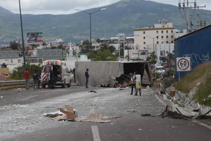 Un aparatoso accidente vehicular se registró el mediodÃa de este lunes en la salida de esta ciudad hacia Mil Cumbres, percance que dejó dos heridos leves y cuantiosos daños materiales: Un tráiler se quedó sin frenos, chocó contra un auto compacto y volcó, terminó atravesado sobre la rúa de lado a lado y el camino estuvo cerrado por aproximadamente tres horas, según los datos brindados por las autoridades de rescate y la PolicÃa.