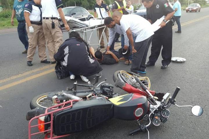 Un joven motociclista resultó lesionado al chocar su unidad contra un automóvil, cuando circulaba sobre la carretera Zamora ? Tangancícuaro. EL afectado fue hospitalizado y los vehículos asegurados por la policía.