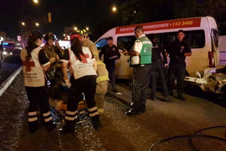 Una carambola en la que estuvieron involucrados cinco vehículos dejó como saldo nueve lesionados, así como cuantiosos daños materiales; el automotor que aparentemente provocó el accidente terminó por darse a la fuga, dijeron las autoridades de Vialidad.