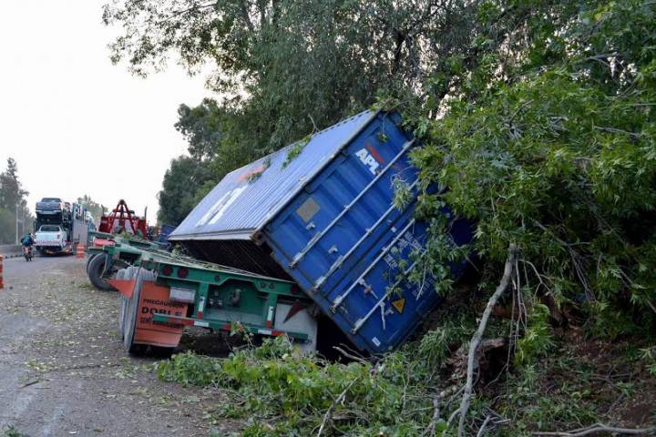 Este lunes el conductor de un tractocamión perdió el control de su unidad, se salió de la cinta asfáltica y volcó sobre su costado derecho, luego del percance el conductor fue canalizado a un nosocomio de la región.