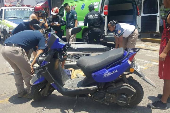 Cuando circulaba a bordo de una motocicleta en compañía de otra mujer, un ama de casa fue embestida por un camión de pasajeros cuyo conductor al ver que había la joven resultó lesionada optó por darse a la fuga y abandonar su unidad en las inmediaciones del Panteón. En el lugar del accidente hay un semáforo descompuesto según se observó en la cobertura noticiosa.