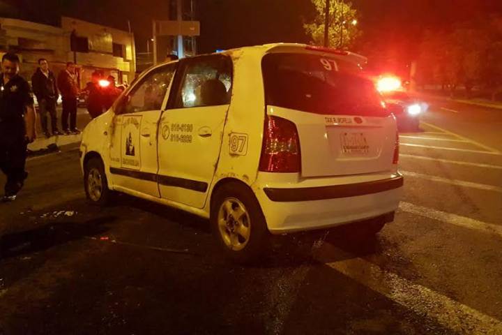 Un taxi se accidentó al transitar por el Libramiento República, en las inmediaciones del Estadio Morelos, en esta capital, en él iba el chofer con su familia, por fortuna no hubo víctimas que lamentar sólo daños materiales, según trascendió en la labor periodística.