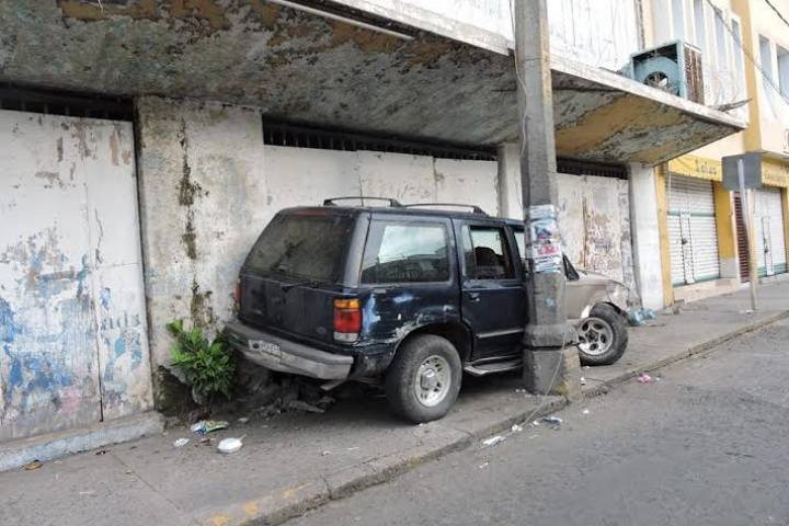 Una camioneta terminó prensada entre un muro del antiguo Cine Juárez y un poste de la Comisión Federal de Electricidad (CFE), por suerte no atropelló a ningún transeúnte dijeron los agentes de Vialidad, los cuales manifestaron que el chofer huyó.