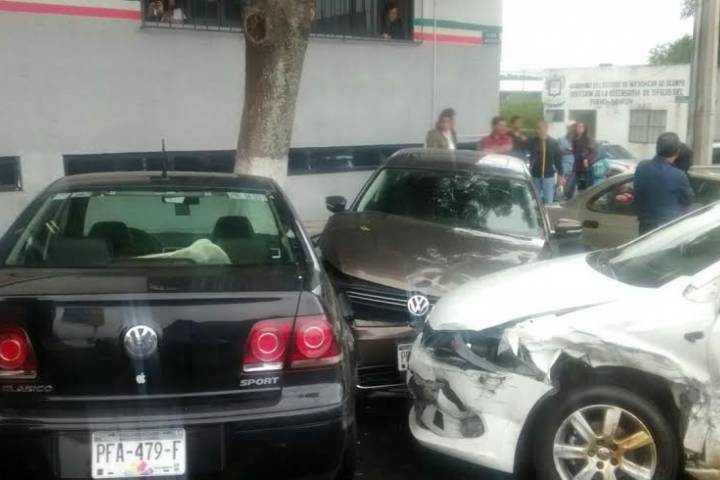 Una camioneta y un automóvil chocaron sobre la Avenida Acueducto, instante en que se proyectaron contra tres vehículos que estaban estacionados a las afueras de las oficinas de la Comisión Nacional del Agua (Conagua), accidente que por fortuna no dejó víctimas humanas que lamentar, trascendió en la labor periodística.