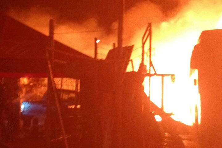 NOTICIAS 14/06/2016Arde taller mecánico y pensión cerca de la plaza de toros "La Monumental"Un taller mecánico y pensión ardió la noche de este lunes por motivos desconocidos, inmueble ubicado en las cercanías de la plaza de toros "La Monumental", quemazón en la que terminaron completamente siniestrados un camión de pasajeros tipo turismo, una camioneta doble rodado y un automóvil compacto, sin que por fortuna hubiera víctimas humanas que lamentar, de acuerdo con lo trascendido en la labor noticiosa.