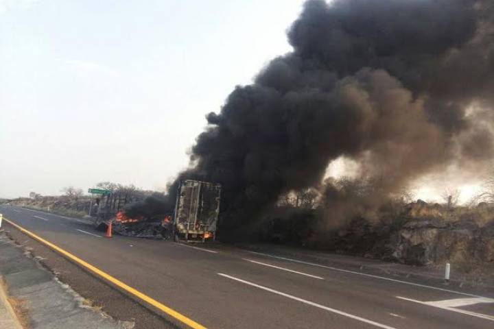 Al parecer debido a una falla mecánica un tráiler ardió en llamas cuando circulaba sobre la Autopista México-Guadalajara, a la altura de este municipio de Vista Hermosa; el conductor resultó ileso pero la unidad fue consumida en su totalidad, según se apreció en el lugar de los hechos.