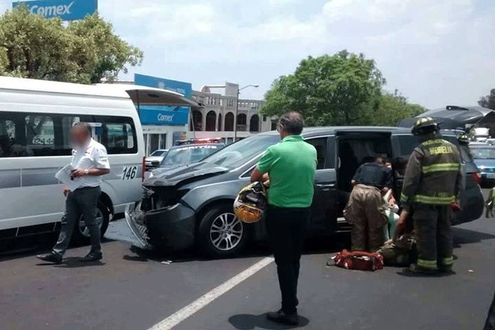 Una carambola entre una camioneta, una combi y una pipa dejó como saldo seis lesionados, todos ellos usuarios del transporte público, así como daños materiales. El primero de los automotores mencionados, el cual fue el responsable del accidente, huyó.