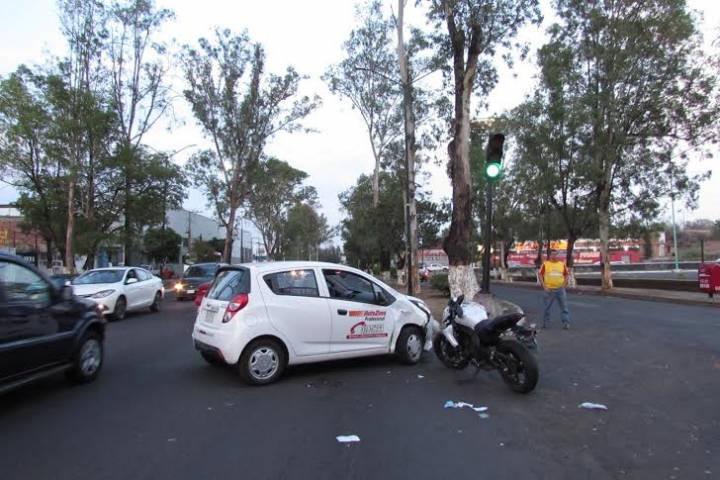 Un motociclista, que a decir de las autoridades de rescate y policiales dijo ser oficial ministerial, resultó lesionado al impactarse la motocicleta que conducía contra un automóvil, un vigilante de la antigua Comercial Mexicana de Tres Puentes fue el primero en ayudar al herido y llamó a los números de rescate.