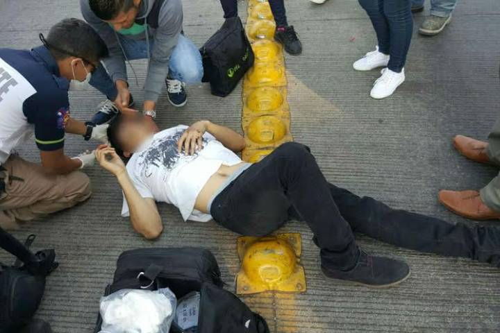 NOTICIAS 19/04/2016Empleado de Elektra herido al caer de su bicicleta
