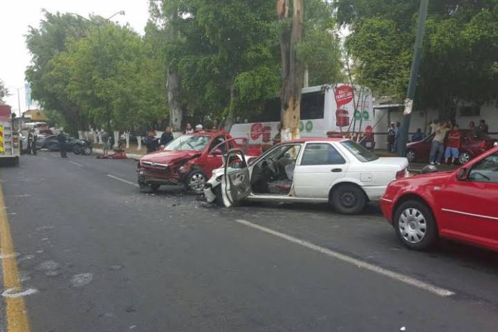 Una aparatosa carambola se registró sobre la Avenida Madero Poniente, frente a la colonia Popular Solidaria, antes de llegar a donde estaba la Comercial Mexicana "Tres Puentes". Fueron cuatro vehículos los que protagonizaron el accidente, mismo que dejó al menos cuatro lesionados.