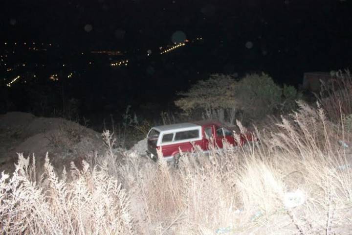Una camioneta se precipitó a un desnivel en la carretera Morelia-Mil Cumbres, muy cerca del campo de adiestramiento militar "Peña del Coyote", ubicado en este municipio de Morelia, lugar donde fue abandonada por quien iba en ella.