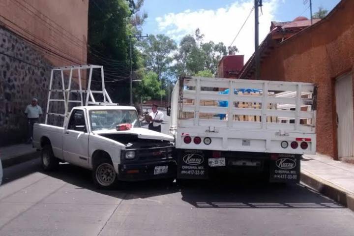 Un lesionado leve y diversos daños materiales fue el saldo que dejó un accidente en el cual una camioneta se quedó sin frenos, en una pendiente de la colonia Residencial Bosques, momento en que colisionó contra otra furgoneta de una empresa azulejera.