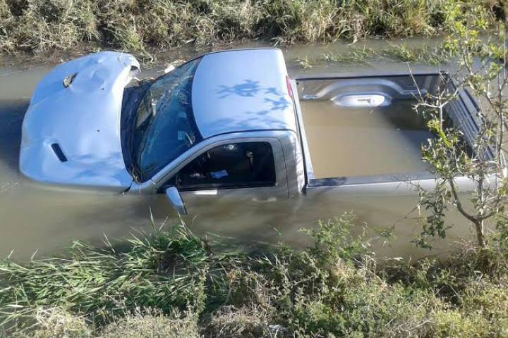 El chofer de una camioneta estuvo a punto de perder la vida, luego de que su unidad presuntamente fuera impactada por un camión de la Comisión Federal de Electricidad, proyectándola hacía un canal de agua de riego, por fortuna el chofer fue rescatado y puesto a salvo, sufriendo solamente lesiones leves.