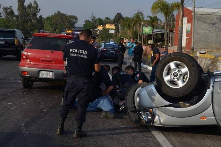 La tarde-noche de este miércoles se registró una colisión entre dos camionetas en la carretera Pátzcuaro-Morelia, a la altura de la desviación a Cointzio, frente al "Auto-Hotel Monarca", en esta ciudad. Uno de los vehículos terminó volcado. Los ocupantes de las unidades sufrieron golpes, pero no de gravedad. En el sitio del accidente se presenció el momento en que uno de los choferes agredió física y verbalmente a los policías, por l... Ver más...