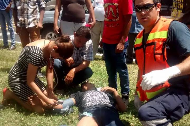 El accidente fue la tarde de este domingo, a la altura de la ClÃnica Morelia. El paciente fue auxiliado por unos paramédicos de la Cruz Roja, mismos que lo subieron a una ambulanc... Ver más...