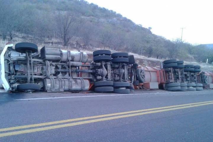 Un tráiler-pipa cargado de combustóleo volcó sobre la autopista Siglo XXI, a la altura de la población de San Pedro Barajas, en esta demarcación, tras lo cual el chofer quedó malherido, pues sufrió un severo traumatismo craneoencefálico, de acuerdo con la información recabada por esta agencia de noticias.