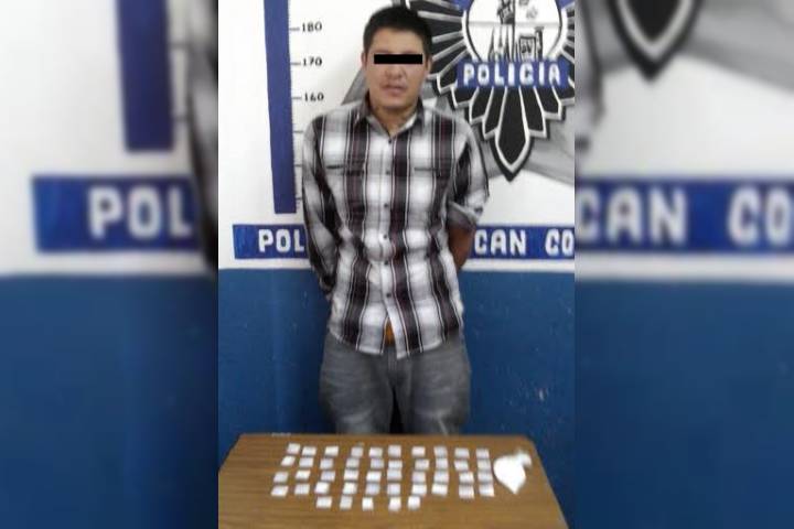 Elementos de la Policía Michoacán adscritos a este municipio de Coeneo lograron la detención de un joven quien fue sorprendido en poder de varias dosis de la droga conocida como cristal, lo anterior gracias a una denuncia ciudadana.