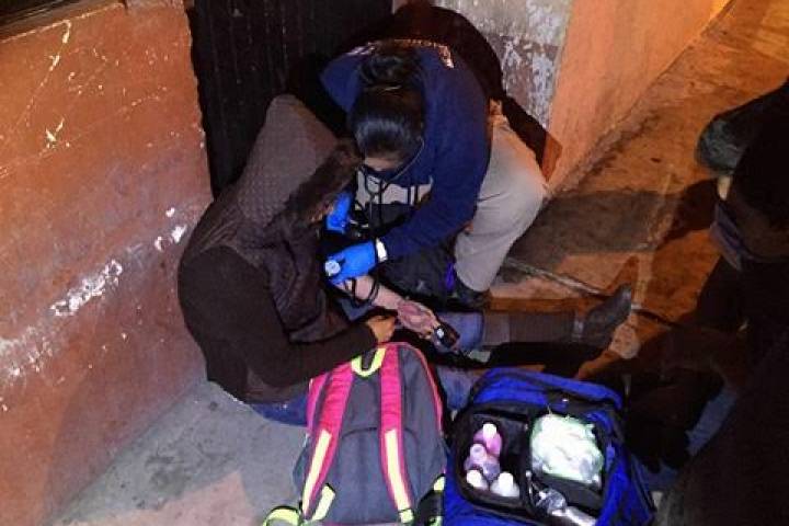 Unos paramédicos de la Cruz Roja atendieron a Luis Alberto "R", de 32 años de edad, quien tenía dos balazos; persona que al ser ent... Ver más...