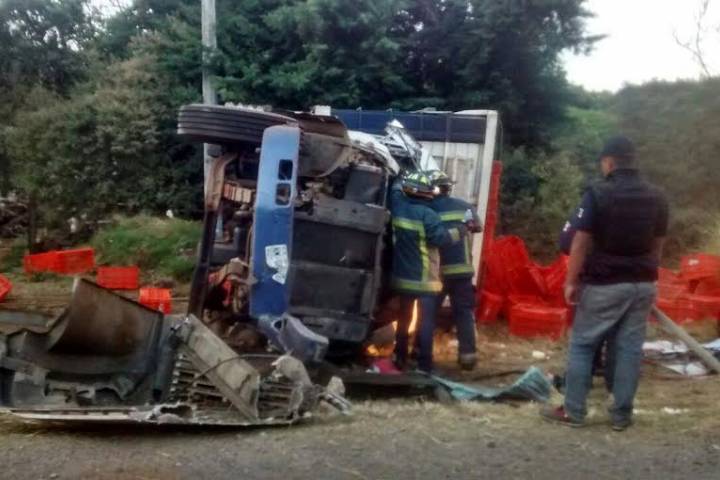 El chofer de un camión tipo torton que transportaba varias cajas de plástico, resultó lesionado levemente luego de que perdiera la dirección del control y tras salirse del camino, se volcó sobre su costado izquierdo en la carretera libre a Lombardía, cerca de La Tzaráracua; personal de auxilio logró rescatarlo con equipo hidráulico al quedar prensado en la cabina de la unidad.