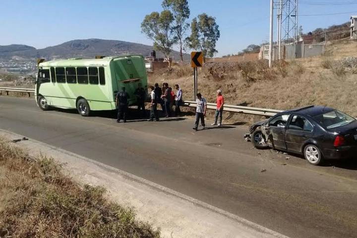 Un automóvil terminó estrellado en la parte trasera de un camión de pasajeros de la Ruta Mil Cumbres después de que a la unidad del transporte público se le tronó una llanta y frenó intempestivamente, de acuerdo con la información que trascendió durante la labor periodÃstica.
