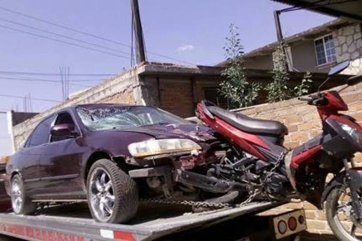 NOTICIAS 22/02/2016Motocicleta queda incrustada en el frente del automóvil que la embistió