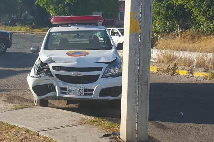 Una camioneta de Protección Civil Estatal (PCE) perdió el control al derrapar con piedras y arena y fue a dar contra un poste de la Comisión Federal de Electricidad (CFE), instante en que el socorrista que manejaba la unidad resultó lesionado, afortunadamente está bien de salud, revelaron contactos oficiales.