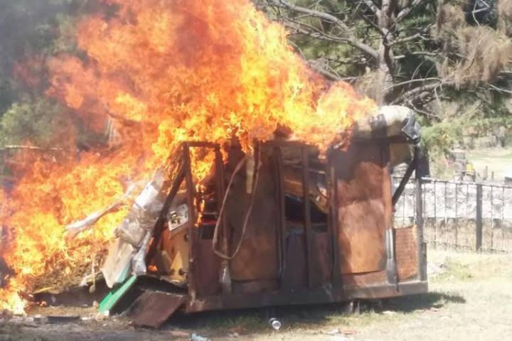 Dos individuos fueron aprehendidos en un reciente operativo de la Policía de Michoacán, acusados de robar con lujo de violencia un camión de la Ruta Villa Magna, unidad que fue recuperada por los uniformados, los indiciados fueron puestos a disposición del agente del Ministerio Público.